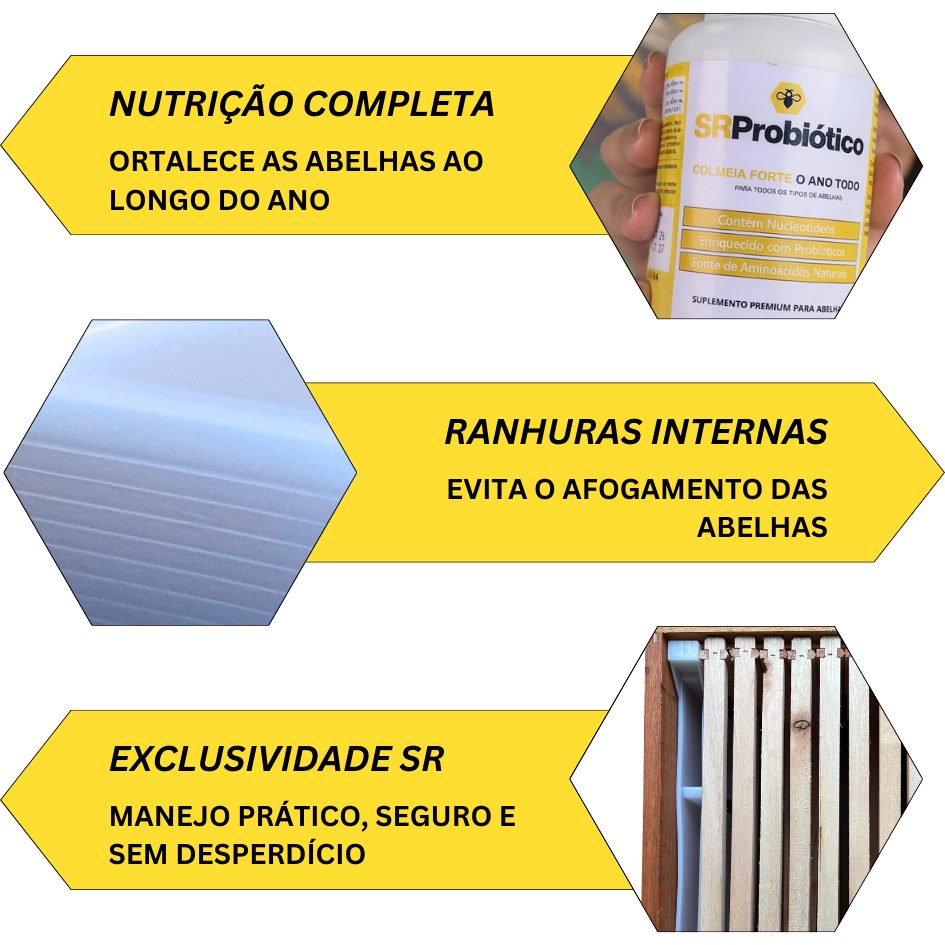 Invista no Kit SR Probiótico + Alimentadores e leve mais resultado para sua apicultura! 🐝