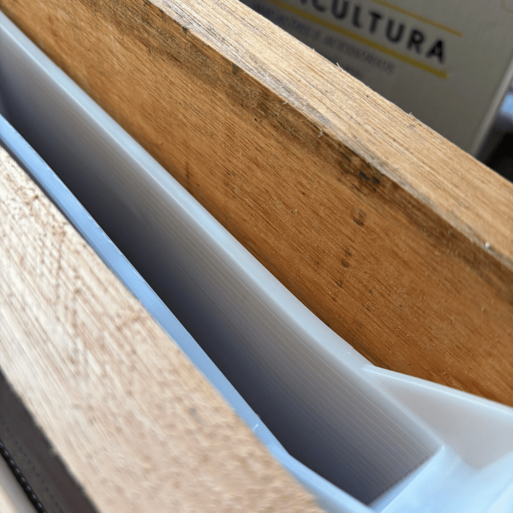 ➡️ Posicione o alimentador com encaixe no ninho padrão Langstroth